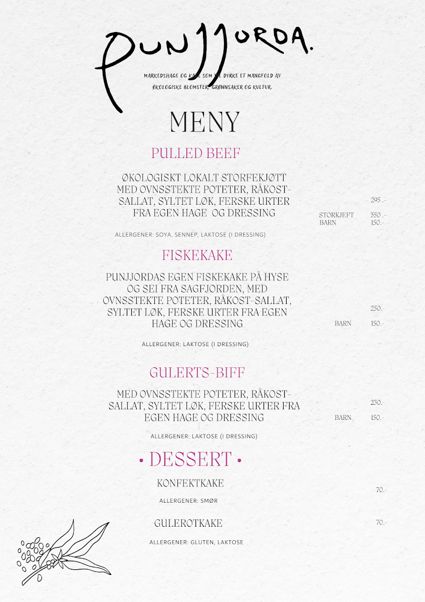 Punjjorda AS Menu